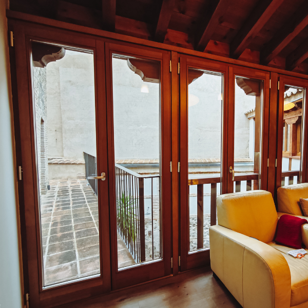 Las ventanas de madera elegidas cumplen con ambos requisitos. El pino laminado, trabajado con la precisión y el acabado característico de Carinbisa, ofrece una estética cálida y natural que conecta con el entorno histórico, mientras que la Serie DJ68 garantiza aislamiento térmico y acústico de primer nivel.